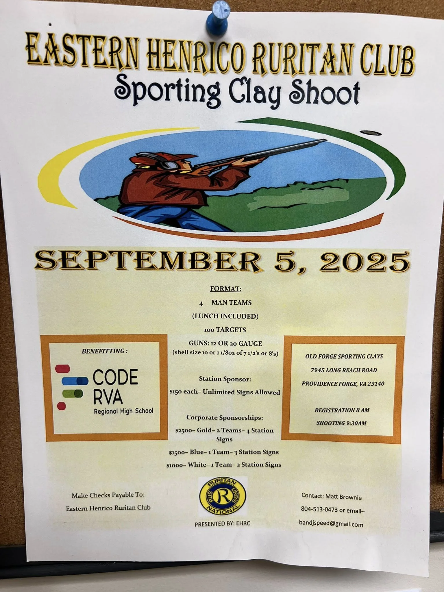 Eastern Henrico Ruritan Club Sporting Clay Shoot @ Old Forge Sporting Clays Friday, September 5, 2025 8:00 AM 5:00 PM Old Forge Sporting Clays 7945 Long Reach Road Providence Forge, VA, 23140 United States (map) Google Calendar ICS