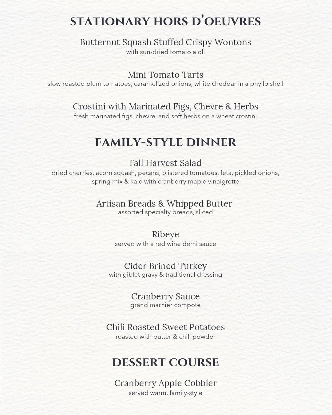 See the full Harvest Dinner Menu below.