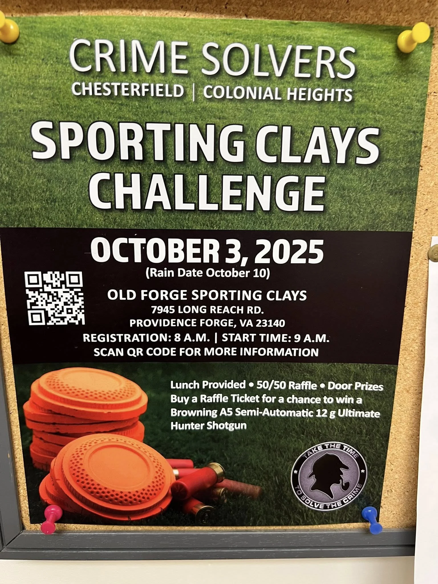 Sporting Clays Fundraiser Challenge @ Old Forge Sporting Clays Friday, October 3, 2025 8:00 AM 5:00 PM Old Forge Sporting Clays 7945 Long Reach Road Providence Forge, VA, 23140 United States (map) Google Calendar ICS