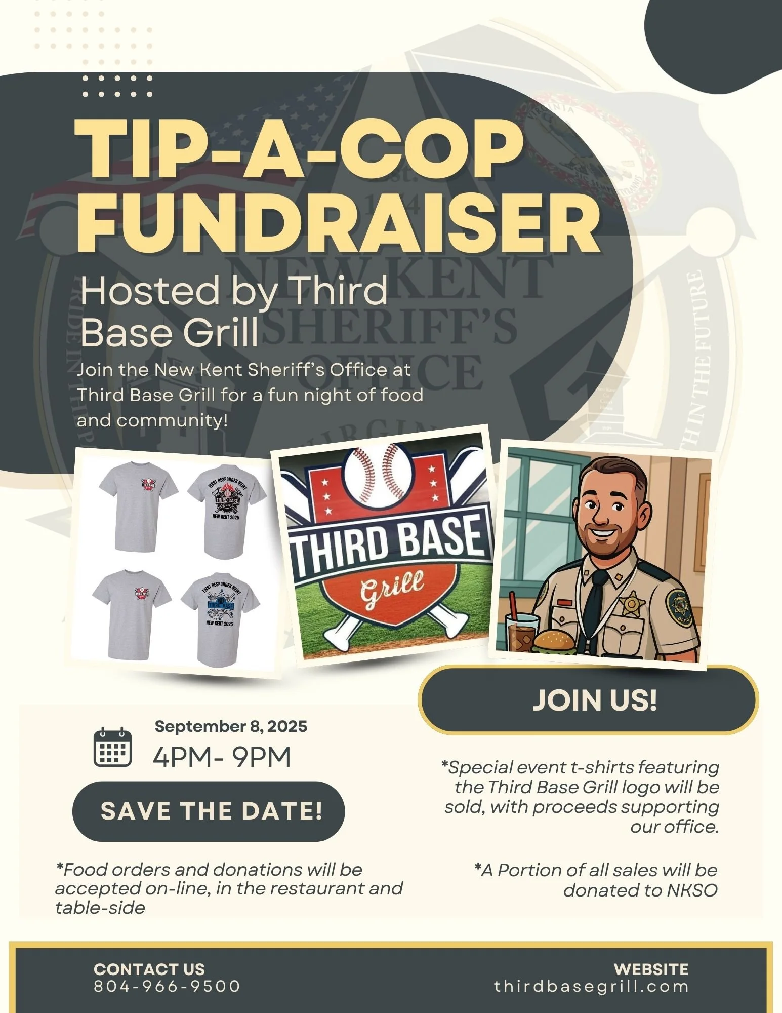 “Join the New Kent Sheriff’s Office at Third Base Grill for a fun night of food and community!”