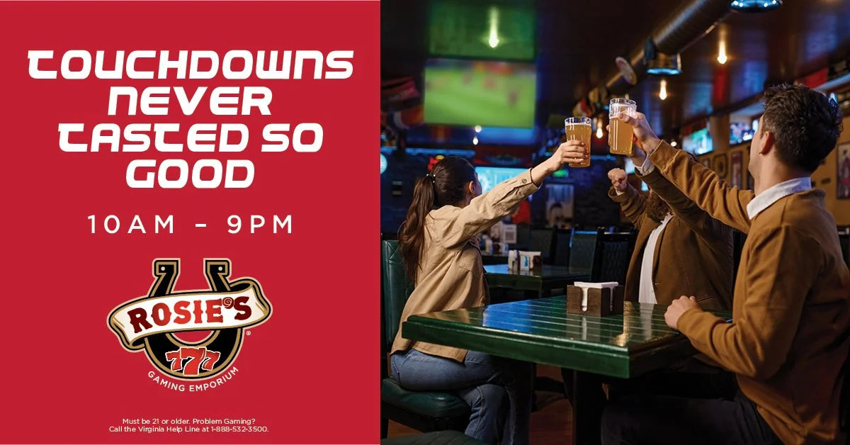 Back to All Events Touchdowns Never Tasted So Good! @ Colonial Downs Sunday, November 9, 2025 10:00 AM 9:00 PM Colonial Downs 10515 Colonial Downs Parkway New Kent, VA, 23124 United States (map) Google Calendar ICS “Every down, every play, every Sunday — right here with us! Join the fun and sip on our Sunday Funday drink specials from 10AM - 9PM while you cheer on your favorite team. $5 Bloody Mary + Mimosas $6 16oz Domestic Aluminums” - Colonial Downs